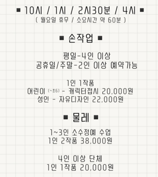 가격: 1인 38.000원 (도자기 2개+서비스)