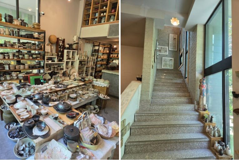 아기자기한 예쁜 도자기들 판매 중이고요 2층으로 가시면 음료와 빵 드실 수 있는 공간 있습니다. 저는 물레 체험만 해서 2층을 가보거나 팥빙수를 먹거나 하지는 않았습니다ㅎㅎ