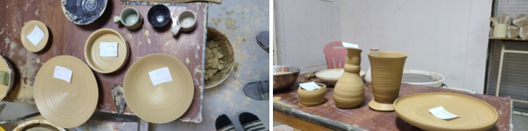 판매하는 것들처럼 화려한 것은 못 만들고 기본적인 컵, 접시 등 사이즈 정도만 조절 가능한 일일 공방 체험이에요!